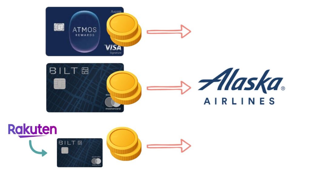 - ・楽天キャッシュバックの受け取り先をBiltポイントにして、さらにアラスカ航空のマイルに交換する(Biltカードを持っている場合)