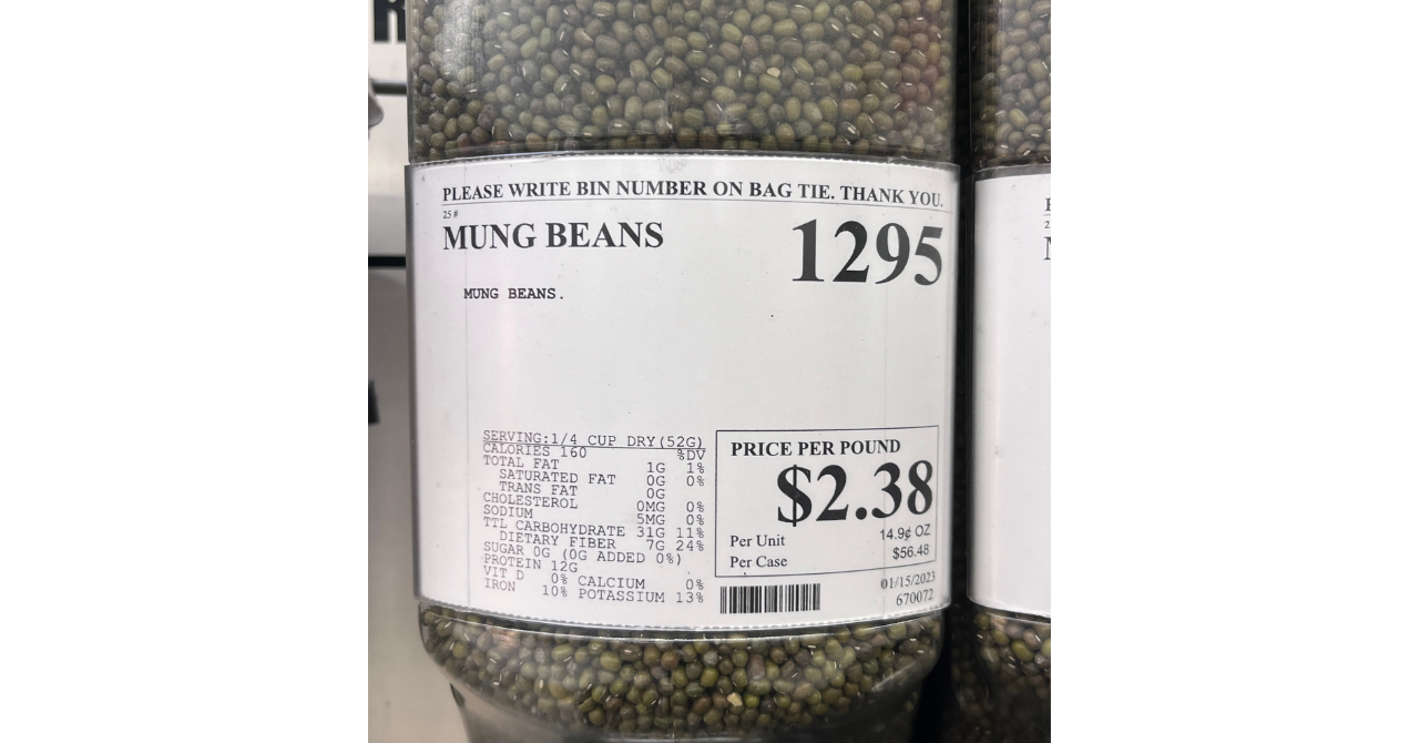 お豆はアジア系スーパーでも買えますし、Whole Foods MarketやWincoなどの量り売りを利用すると少量から始めることができます。