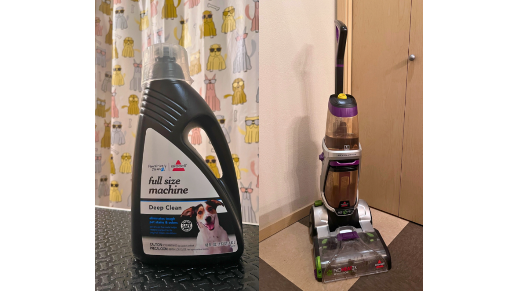 もしカーペットクリーナーを持っている場合は、エンザイム系クリーナーをかけて時間がたったこの段階で使うのがおすすめです。